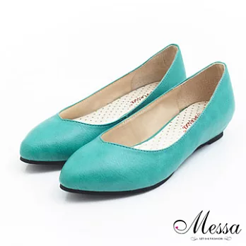 【Messa米莎】(MIT)極簡風尚素面內真皮尖頭低跟包鞋35綠色
