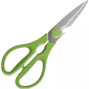 本商品一件入,尖銳物品請遠離孩童與寵物。烹飪前的食材處理總是麻煩又累人,不同的食材需要不同的工具,推薦您使用這款多功能剪刀;不僅能當作剪刀使用,內緣鋸齒狀設計,可做為核桃堅果破殼器或寶特瓶開蓋使用;刀刃下方微凹設計,可打開皇冠型可樂瓶蓋;觸感佳握把可防滑,手濕使用也方便;活動式可拆卸設計,刀刃一側亦可當水果短刀使用,同時也方便您使用後清潔。